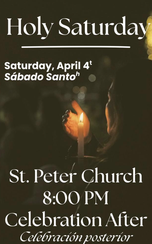 - 7:30 am Mass at St. Peter Church